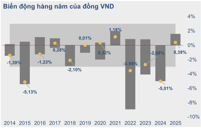"Do đó, chúng tôi cho rằng đồng VND sẽ biến động trong biên độ ±5% trong năm 2025.", báo cáo nêu rõ.