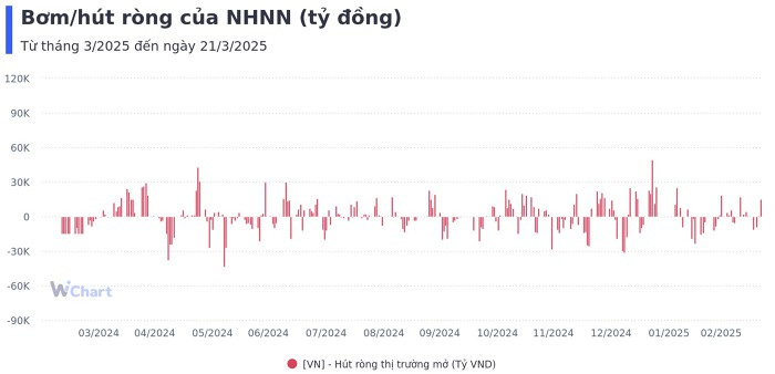 Trong tuần 17/3-21/3, Ngân hàng Nhà nước đã hút ròng 5.409 tỷ đồng trên thị trường liên ngân hàng khi lượng lớn giấy tờ có giá đáo hạn.