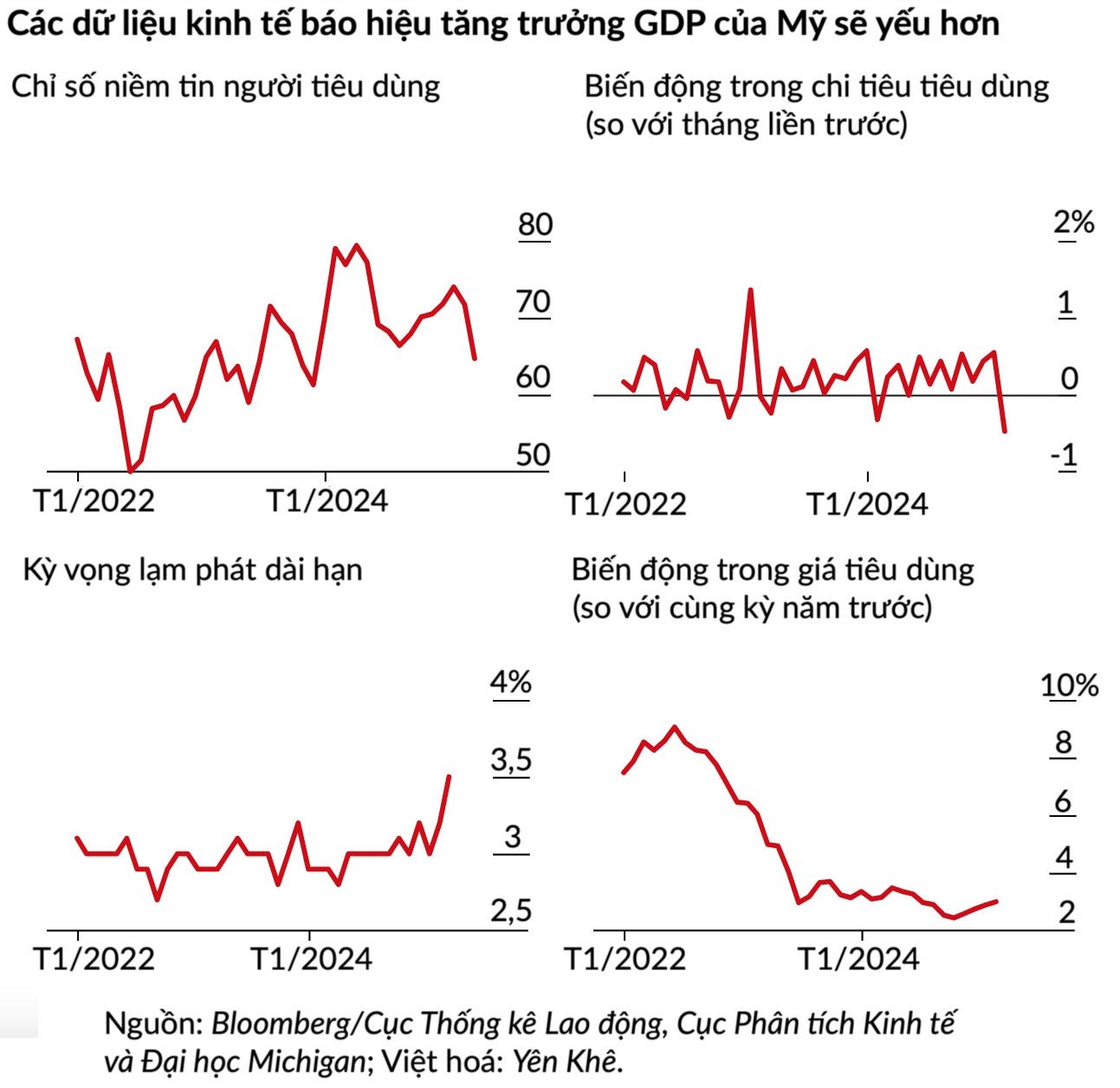 Giờ đây, lạm phát sẽ không dễ hạ nhiệt, đặc biệt là khi ông Trump quyết tâm áp thêm thuế quan dù trước đó ông đã đưa ra một số nhượng bộ. Người tiêu dùng và thị trường trở nên lo lắng và nền kinh tế có vẻ dễ bị tổn thương trước nguy cơ suy thoái.