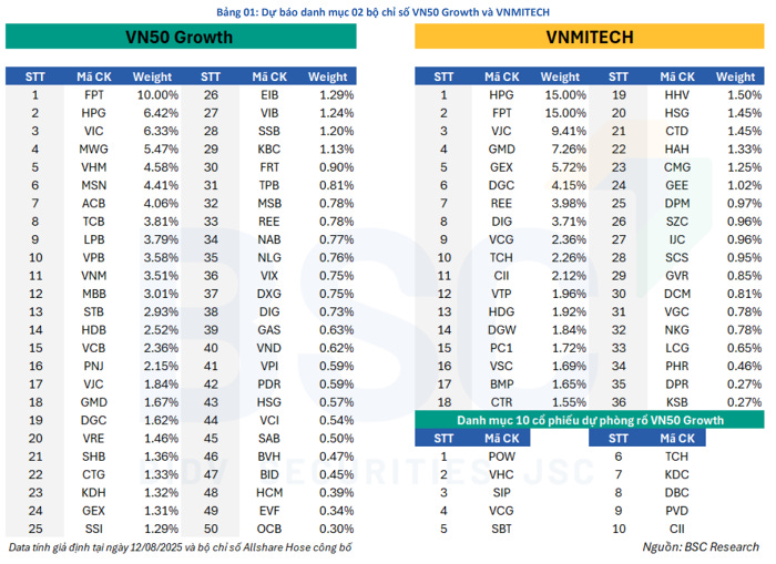 Trong bối cảnh này, BSC Research khẳng định hai chỉ số mới VN50 Growth và VNMITECH sẽ là nền tảng cho sự xuất hiện của các ETF thế hệ mới, có khả năng hút vốn mạnh mẽ nhờ bám sát xu hướng đầu tư toàn cầu vào cổ phiếu tăng trưởng và công nghệ.