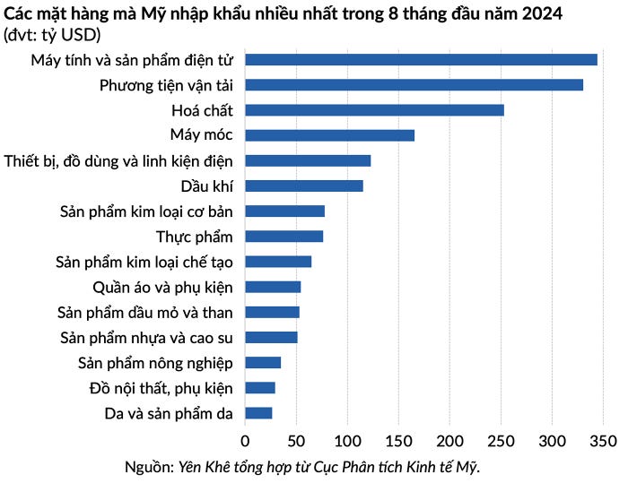 Nếu ông Trump xúc tiến kế hoạch áp thuế phổ quát lên hàng hoá của mọi quốc gia khác, các mặt hàng kể trên nhiều khả năng sẽ là những sản phẩm có nguy cơ rơi vào tầm ngắm.