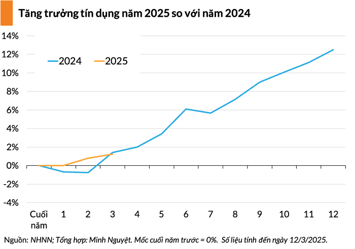 Mặc dù theo quy luật các năm, tín dụng đầu năm thường giảm, nhưng tăng trưởng tín dụng đầu năm 2025 có dấu hiệu khởi sắc hơn so với cùng kỳ năm 2024.