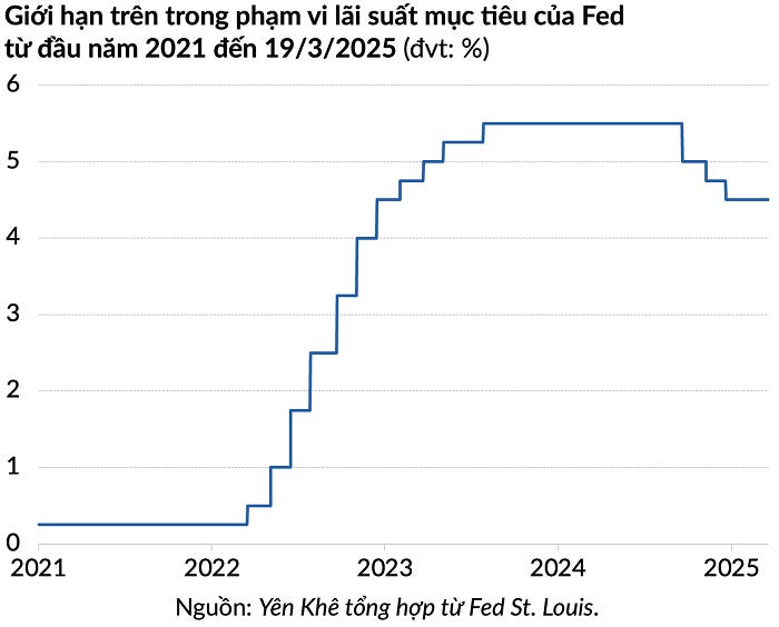 Giới chức Fed đã giữ nguyên lãi suất trong hai cuộc họp chính sách liên tiếp, lần gần nhất là vào tuần trước. Fed cho biết lãi suất đang ở mức có thể dễ dàng điều chỉnh linh hoạt để phản ứng với tác động kinh tế từ các chính sách của Tổng thống Donald Trump, cả về thương mại lẫn nhập cư.