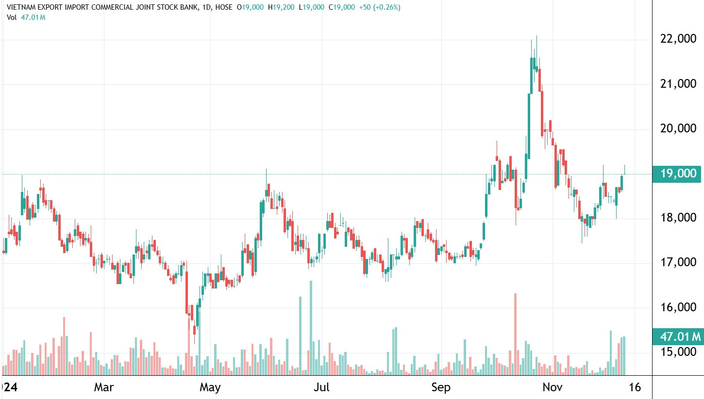 Chốt phiên ngày 10/12, cổ phiếu EIB ở mức 19.000 đồng/cp, cao nhất kể từ đầu tháng 11, tương ứng tăng gần 10% so với đầu năm. Vào giai đoạn cuối tháng 10, cổ phiếu này từng giao dịch ở mức giá 21.600 đồng/cp.