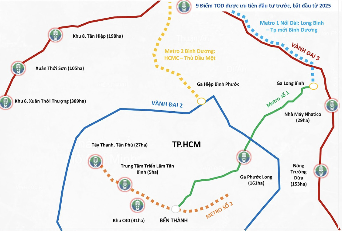 Tại TP HCM, nghị quyết quy hoạch TOD (Transit-Oriented Development) được thông qua cuối tháng 8/2025 đã tạo khung thể chế mới, cho phép tăng hệ số sử dụng đất tối đa 1,5 lần trong phạm vi 1.000 m quanh các ga metro.