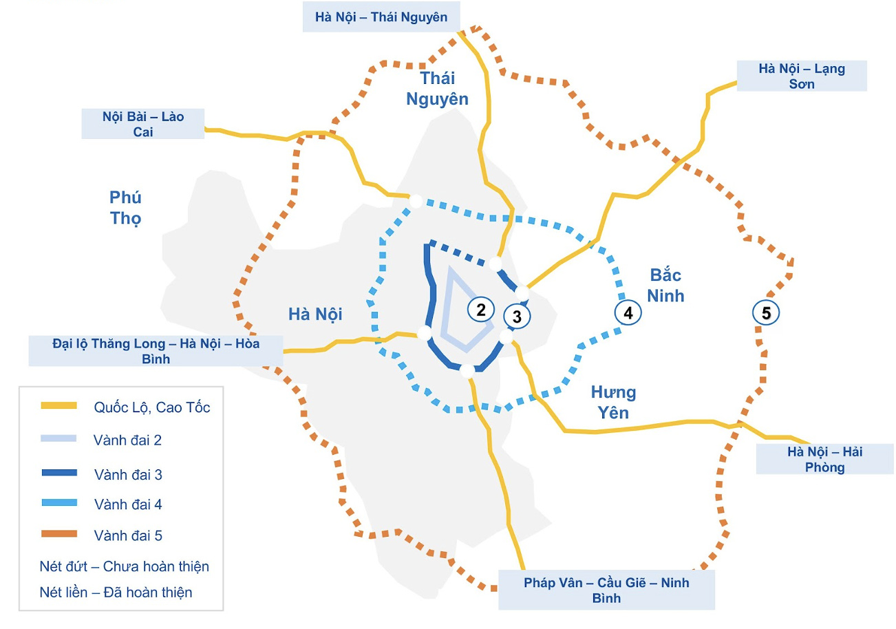 Vị trí Vành đai 3, 4, 5. (Nguồn:DXS-FERI).