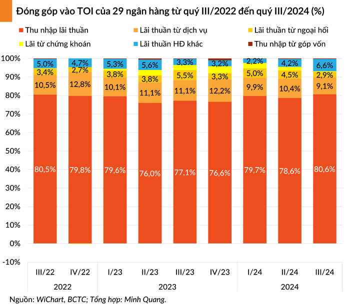 Trong ba quý đầu năm 2024 và đặc biệt là quý III, lợi nhuận ngân hàng ngày càng phụ thuộc lớn vào hoạt động tín dụng.