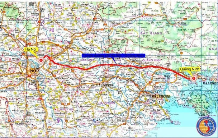 Bản đồ hướng tuyến đường sắt tốc độ cao Hà Nội - Quảng Ninh. (Ảnh: Báo Đầu tư).