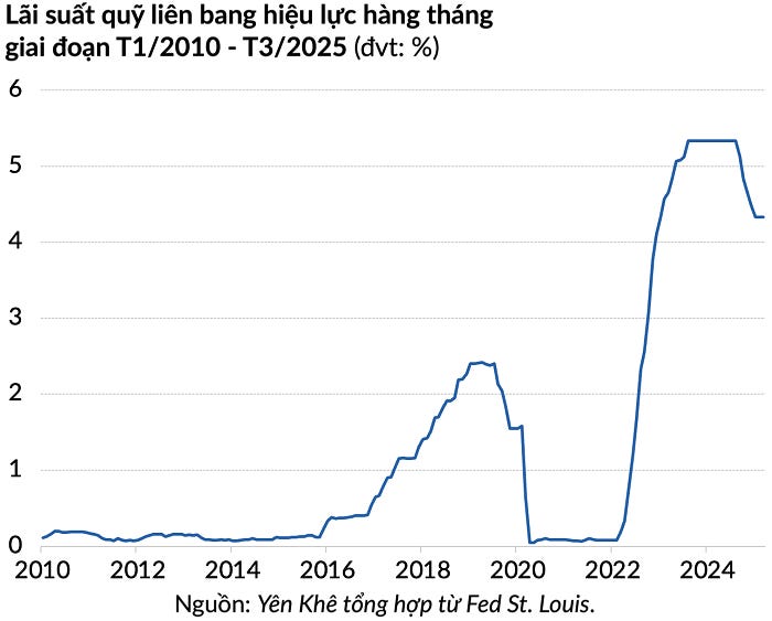 Fed đã duy trì lãi suất trong phạm vi 4,25% - 4,5% kể từ đầu năm 2025 đến nay giữa những tín hiệu cho thấy chính sách thương mại của chính quyền mới sẽ gia tăng áp lực lạm phát và kìm hãm tăng trưởng.