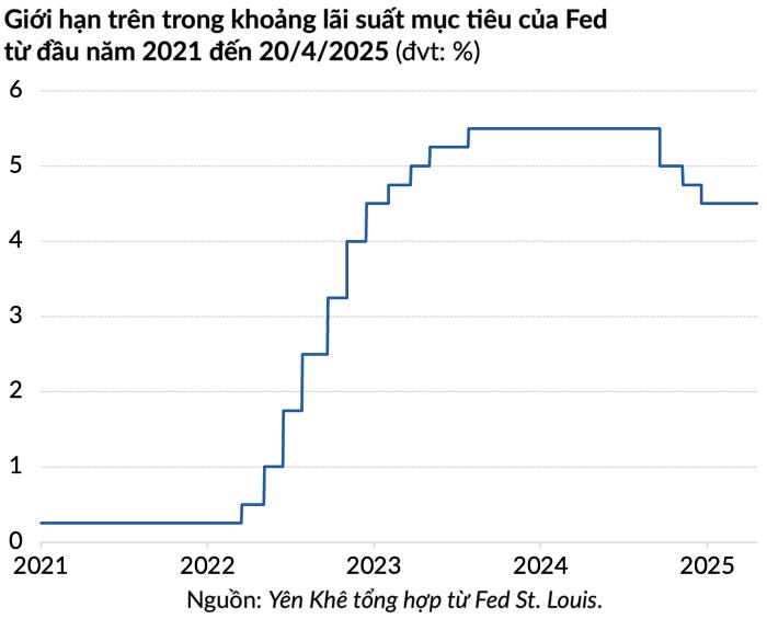 Cuộc họp chính sách kế tiếp của Fed diễn ra vào ngày 6 - 7/5 và nhìn chung các nhà đầu tư dự đoán giới chức ngân hàng trung ương Mỹ sẽ “án binh bất động”, tức là tiếp tục giữ lãi suất trong phạm vi 4,25 - 4,5%.