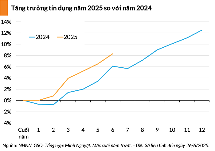 Theo dữ liệu của NHNN, đến 26/6, dư nợ toàn hệ thống đạt trên 16,9 triệu tỷ đồng. Mức này tăng 8,3% so với cuối năm ngoái và 18,87% cùng kỳ. Đây cũng là mức tăng trưởng tín dụng cao nhất hai năm.