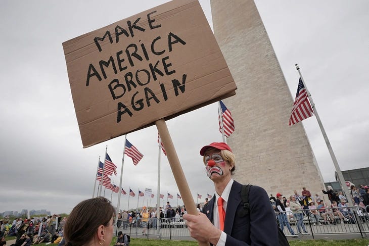 "Những gì đang xảy ra ở Mỹ là vấn đề của mọi người. Đó là sự điên rồ về kinh tế... Ông ta sẽ đẩy chúng ta vào một cuộc suy thoái toàn cầu", cô Liz Chamberlin, một công dân mang hai quốc tịch Mỹ và Anh, nói tại một cuộc biểu tình ở London (Anh).