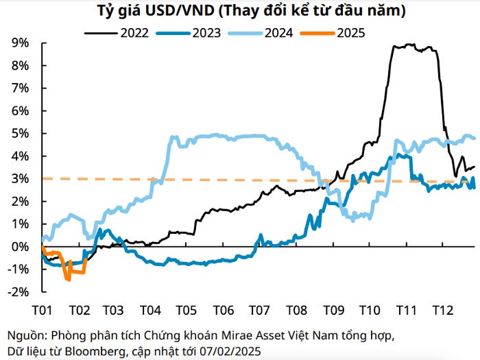 Tính đến ngày 7/2/2025, tỷ giá trên kênh liên ngân hàng đã giảm 0,57% so với đầu năm, cho thấy một khởi đầu tương đối thuận lợi đối với năm 2025 dù có tăng nhẹ vào đầu tháng 2.