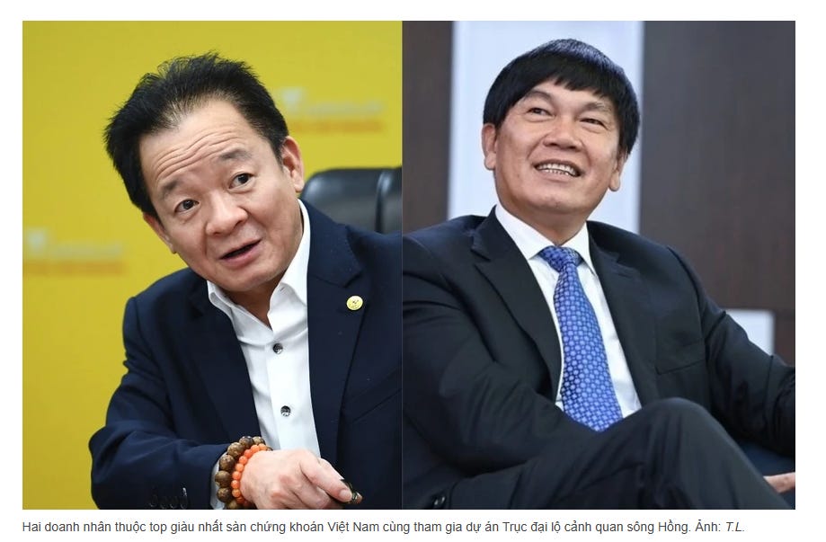 Hai doanh nhân thuộc top giàu nhất sàn chứng khoán Việt Nam cùng tham gia dự án Trục đại lộ cảnh quan sông Hồng. Ảnh: T.L.