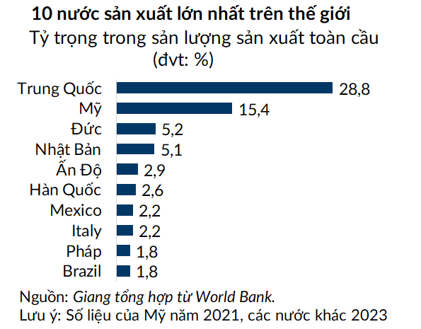 So sánh với những cường quốc sản xuất khác
