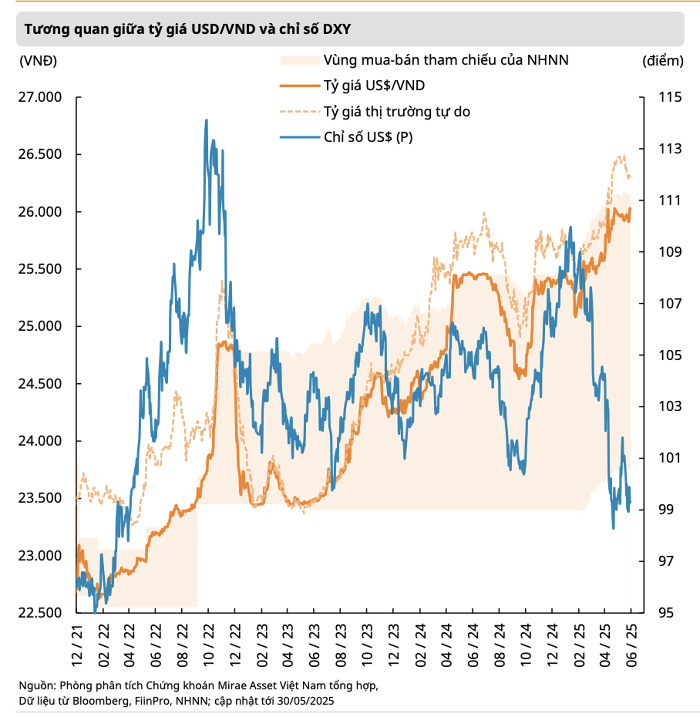 Báo cáo Mirae Asset đánh giá, bước sang nửa cuối năm 2025, triển vọng tỷ giá sẽ phụ thuộc vào nhiều yếu tố bên ngoài và trong nước.