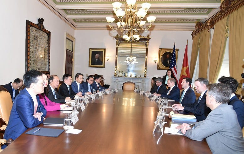 Chiều 09/4 (giờ địa phương), trong khuôn khổ chuyến thăm Hoa Kỳ với tư cách là Đặc phái viên của Tổng Bí thư Tô Lâm để trao đổi về các vấn đề kinh tế - thương mại song phương, Phó Thủ tướng Chính phủ Hồ Đức Phớc đã gặp Đại diện Thương mại Hoa Kỳ Jamieson Greer.
