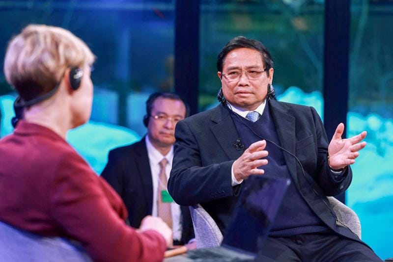 Chiều 21/1 (giờ địa phương), Thủ tướng Chính phủ Phạm Minh Chính đã tham dự và phát biểu, đối thoại tại Phiên Đối thoại chính sách đặc biệt "Bứt phá tới tương lai: Tầm nhìn của Việt Nam về đổi mới sáng tạo và vai trò toàn cầu" trong khuôn khổ Hội nghị Diễn đàn Kinh tế Thế giới (WEF) Davos năm 2025.