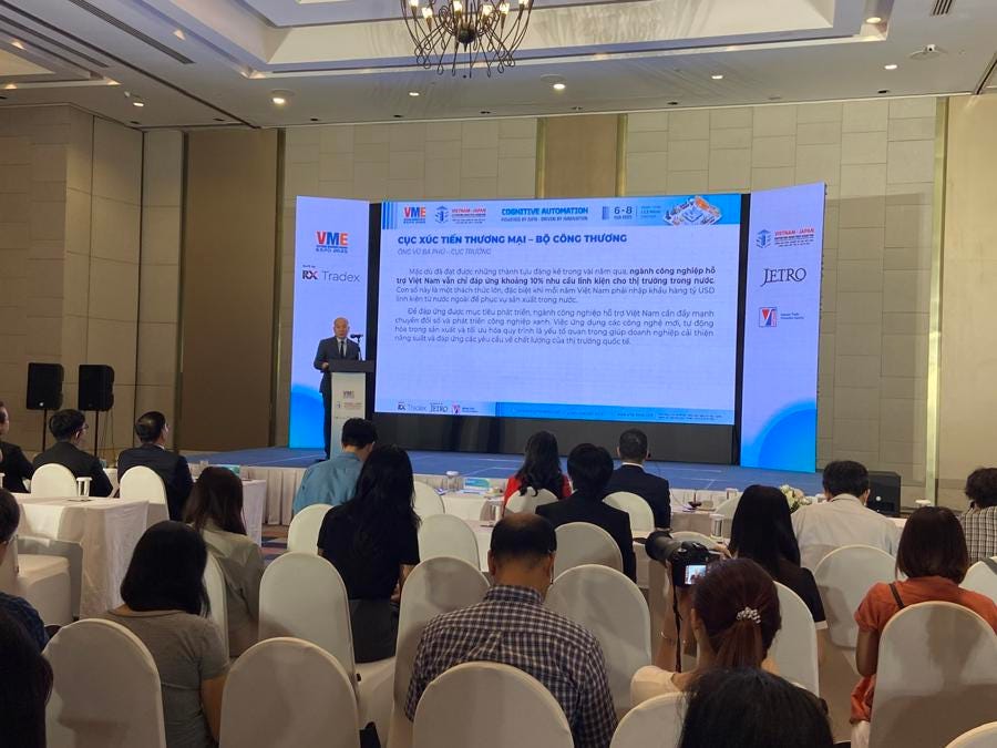 Phát biểu tại buổi lễ, ông Vũ Bá Phú, Cục trưởng Cục Xúc tiến thương mại, cho biết tính đến cuối năm 2024, ngành công nghiệp hỗ trợ Việt Nam có hơn 6.000 doanh nghiệp đang hoạt động trong các ngành dệt may, sản xuất lắp ráp ô tô, da giày, cơ khí chế tạo và điện tử.