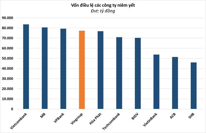 Sau thương vụ trên, vốn điều lệ Vingroup có thể tăng thành 77.335 tỷ đồng. Con số này giúp Vingroup trở thành công ty phi tài chính lớn nhất sàn chứng khoán, vượt qua Hòa Phát. Mức vốn điều lệ này cũng sẽ tiệm cận với 3 ngân hàng đang niêm yết lớn nhất là Vietcombank, MB và VPBank.
