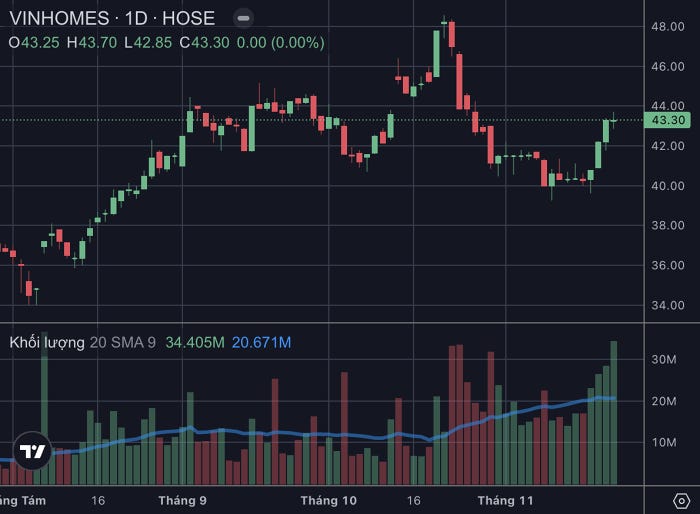 Có thời điểm thị trường diễn biến thuận lợi, thị giá cổ phiếu VHM vươn lên ngưỡng 48.250 đồng/cp, đem lại tỷ suất lợi nhuận không tưởng, gần 38%.