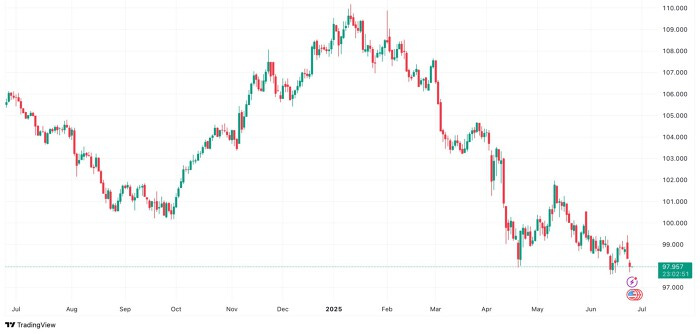 Trong báo cáo vĩ mô tháng 5 mới công bố, Chứng khoán VPBank (VPBankS) cho biết chỉ số Dollar Index (DXY) – thước đo sức mạnh đồng bạc xanh, ghi nhận mức giảm khoảng 1,25% trong tháng 5/2025, đánh dấu tháng suy giảm thứ năm liên tiếp.