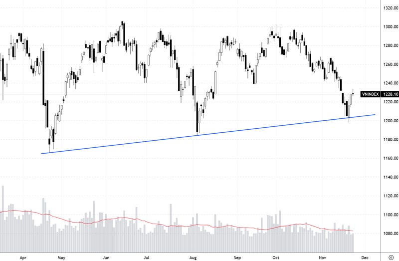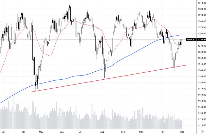 Thị trường hiện tại không có quá nhiều tin tức ủng hộ cho đà tăng mạnh, theo tôi nhận định sẽ không có quá nhiều cú hích thông tin đủ lớn để hỗ trợ thị trường trong tháng 12 này. Vẫn sẽ là câu chuyện nâng hạng thị trường và kì vọng thị trường tỉ giá ổn định cùng những chính sách thay đổi sau khi tổng thống Donald Trump đắc cử. Nhà đầu tư nước ngoài mua ròng trở lại mạnh mẽ sẽ là động lực tăng trưởng rất lớn cho thị trường của chúng ta, tuy nhiên đó sẽ là những kì vọng và câu chuyện trong năm 2025.