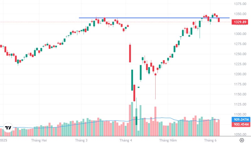 Trong tuần giữa tháng 6 dự kiến sẽ diễn ra phiên đàm phán thứ 3 về thuế đối ứng giữa Việt Nam - Hoa kỳ, nếu kết quả thuận lợi, chúng ta hoàn toàn có thể kỳ vọng vào một phiên bùng nổ của thị trường. Trường hợp các ẩn số vẫn chưa rõ ràng, ngưỡng hỗ trợ nhà đầu tư cần lưu ý quanh mốc 1315 - 1320 điểm, một sự thoái lui sâu hơn sẽ phát tín hiệu rủi ro tiếp tục sụt giảm.