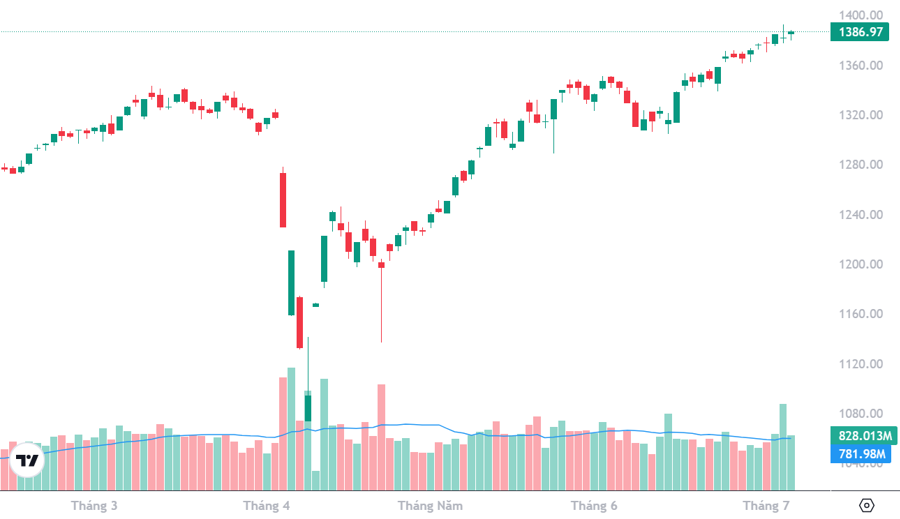 Vùng kháng cự 1500 -1520 điểm vốn là vùng đỉnh lịch sử năm 2022, nên có ý nghĩa rất lớn về mặt tâm lý và kỹ thuật. Dù vậy thị trường đang có những yếu tố khiến tôi nghĩ đến kịch bản VN-Index chinh phục đỉnh mới, đó là thanh khoản duy trì ở mức cao với độ lan tỏa tích cực; Ngân hàng Nhà nước liên tục bơm tiền vào nền kinh tế và khối ngoại có xu hướng giảm bán ròng, thậm chí quay lại mua ròng ở một số cổ phiếu lớn với hơn 10 ngàn tỷ kể từ đầu tháng 7.