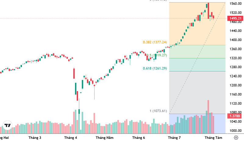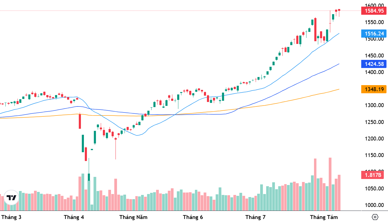 Đánh giá về diễn biến ngắn hạn, các chuyên gia không cho rằng VN-Index sẽ hình thành mô hình hai đỉnh mà có thể lên thêm hoặc hình thành vùng tích lũy tạm nghỉ. Quan điểm lạc quan nhất cho rằng thị trường sẽ tiếp tục lên chạm vùng 1600 điểm hoặc cao hơn trong tháng 8.